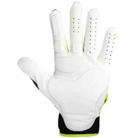 - Palm of hand is constructed with white goat skin leather and the back is a seamless moisture wicking stretch back