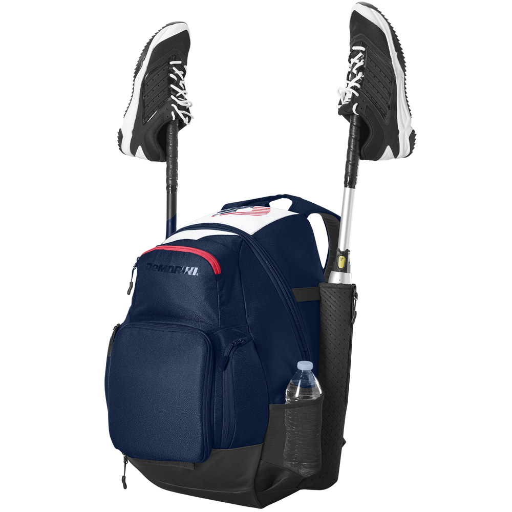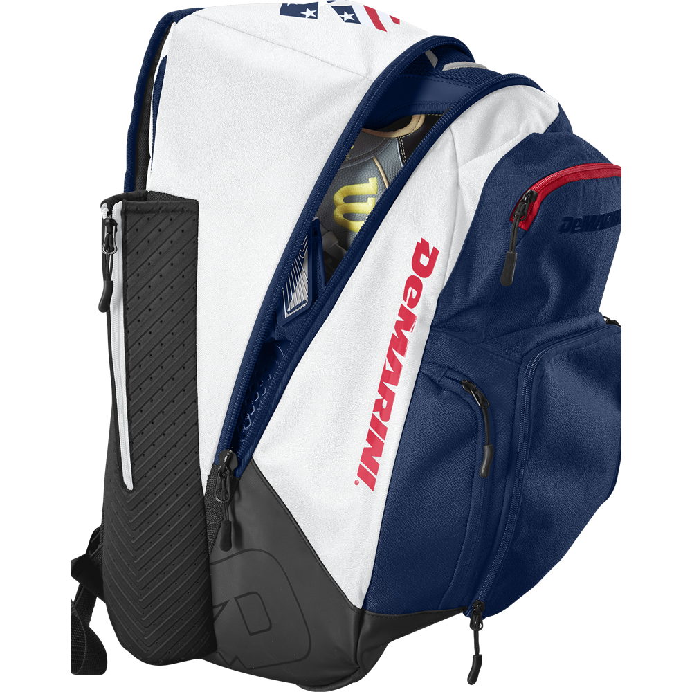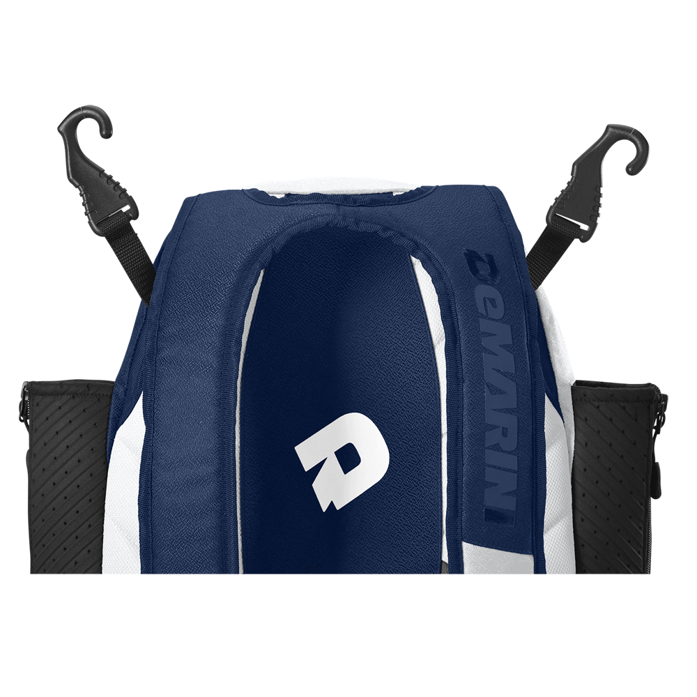 The DeMarini Voodoo XL Backpack is designed for players who love options. An expanded main compartment fits your helmet, glove and gear comfortably. A pair of molded neoprene bat sleeves allows you to take two of your favorite sticks with you wherever you’re headed – and the bag is designed to hold a third bat if needed. Hang your arsenal from the dugout fence with a durable J-style hook, store your valuables in a fleece-lined pocket as you take your full arsenal on the go this season.