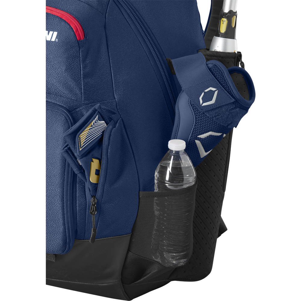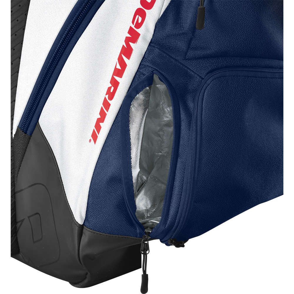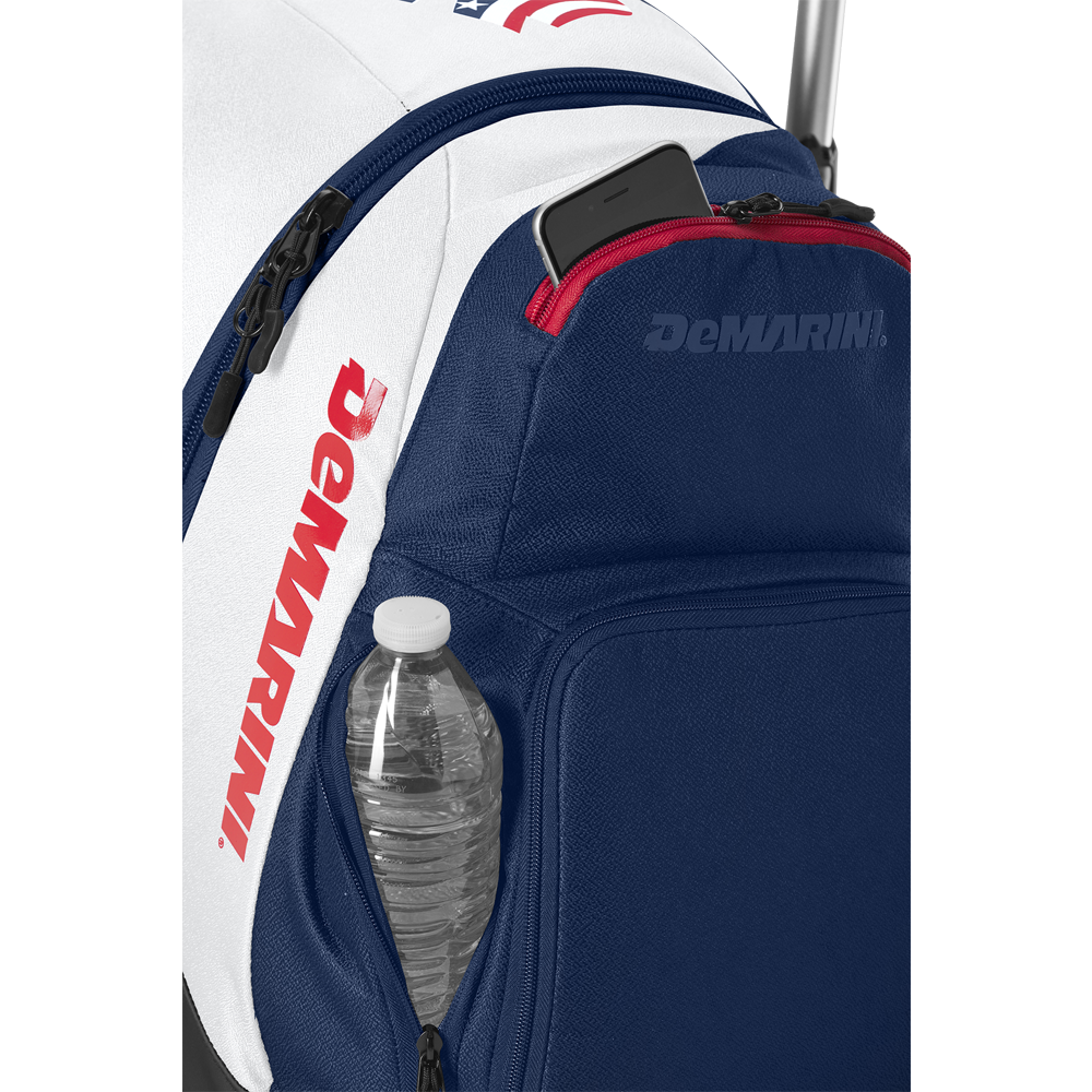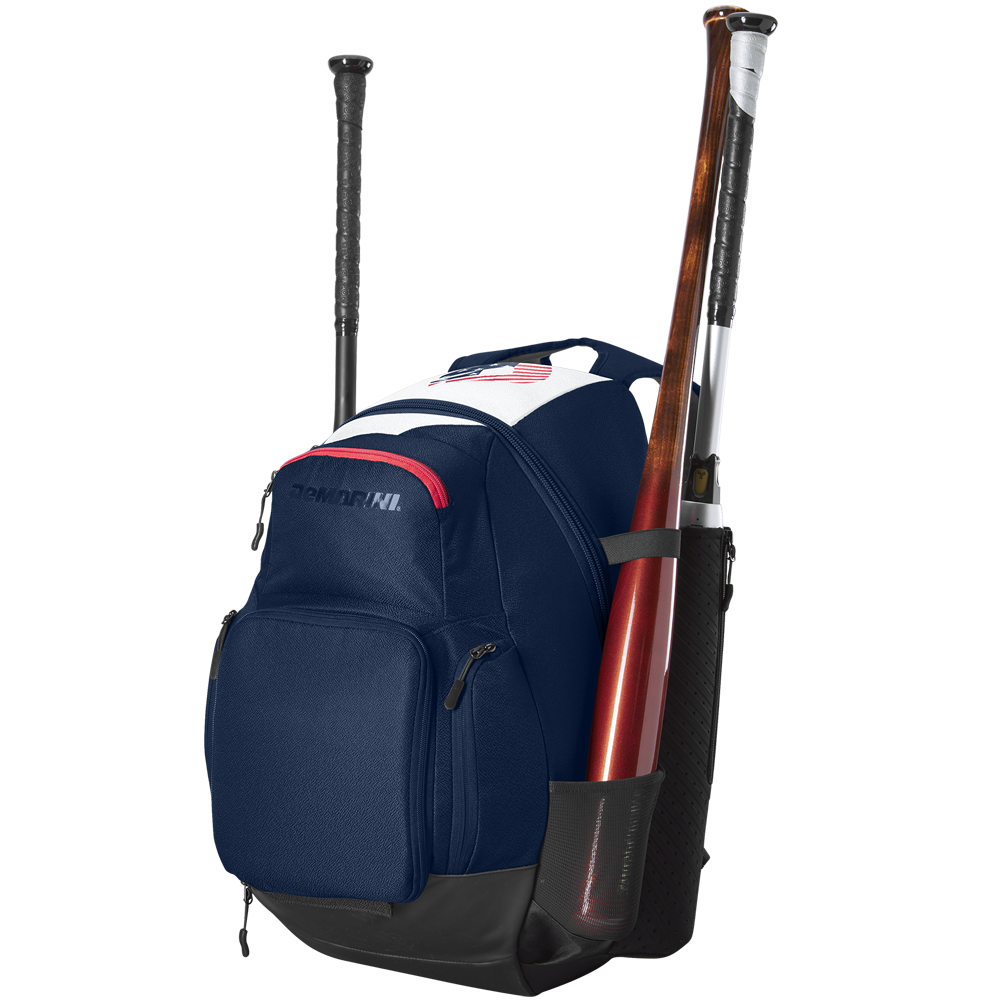 The DeMarini Voodoo XL Backpack is designed for players who love options. An expanded main compartment fits your helmet, glove and gear comfortably. A pair of molded neoprene bat sleeves allows you to take two of your favorite sticks with you wherever you’re headed – and the bag is designed to hold a third bat if needed. Hang your arsenal from the dugout fence with a durable J-style hook, store your valuables in a fleece-lined pocket as you take your full arsenal on the go this season.