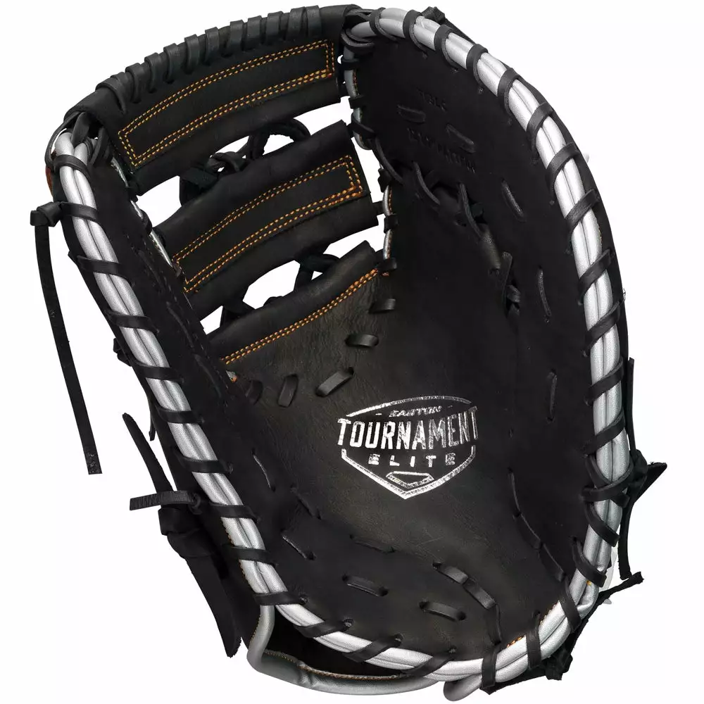 Easton’s all-new Tournament Elite Series is the perfect glove for the 14u travel ball player. The Tournament Elite features a transitional size pattern with a game-ready oil-tanned cowhide leather shell and cowhide palm lining. The Ideal Fit System™ is designed with a pro-style open back and an easy, on-the fly, adjustable custom fit. Simply pull the laces to tighten the hand opening and re-tie the knot. The re-positioned pinkie loop also allows for two fingers in the pinkie stall. Finished off with snakeskin embossed leather accents for some subtle glove swag, just like the pros.