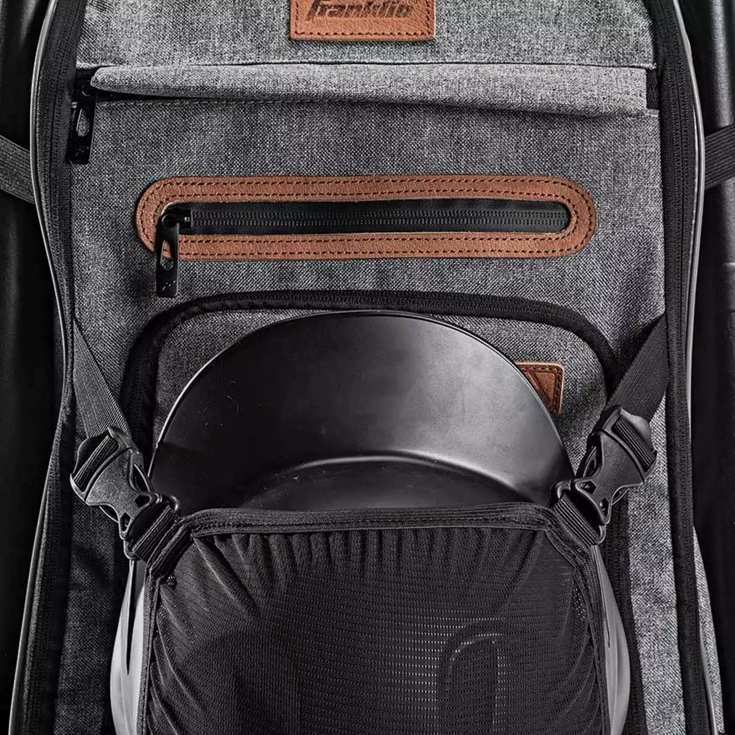 - Retractable, external helmet storage compartment allows you to tuck away the durable mesh when not in use
