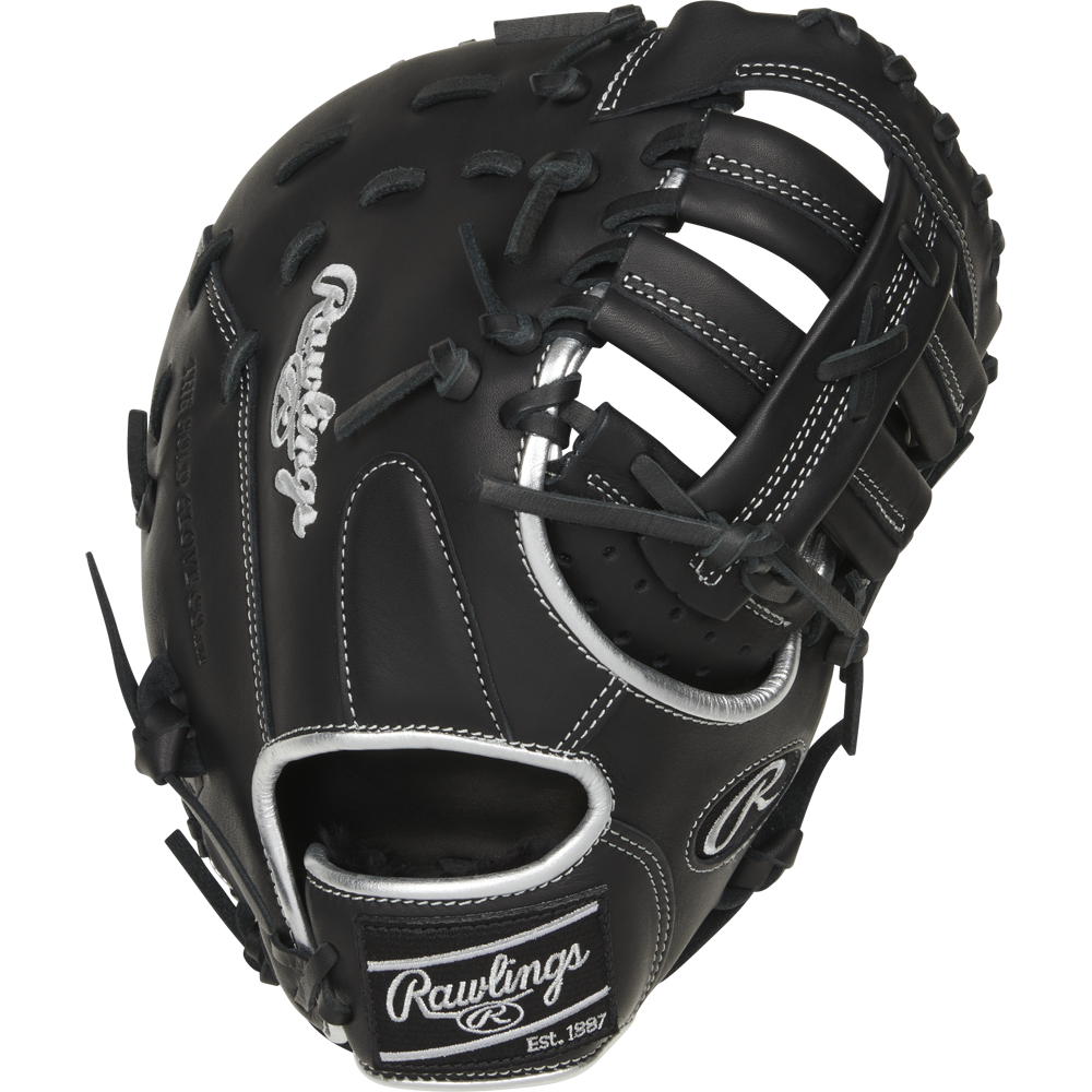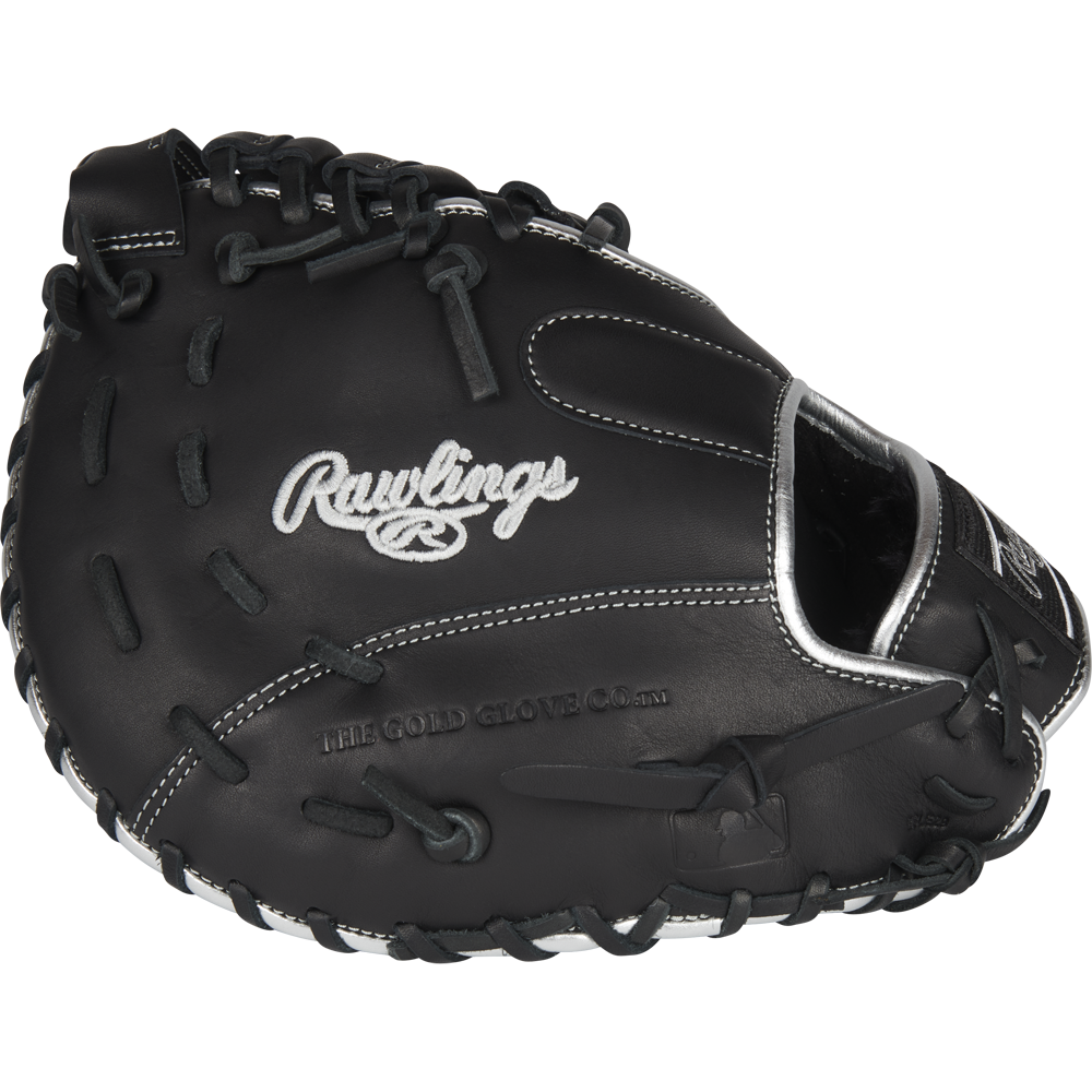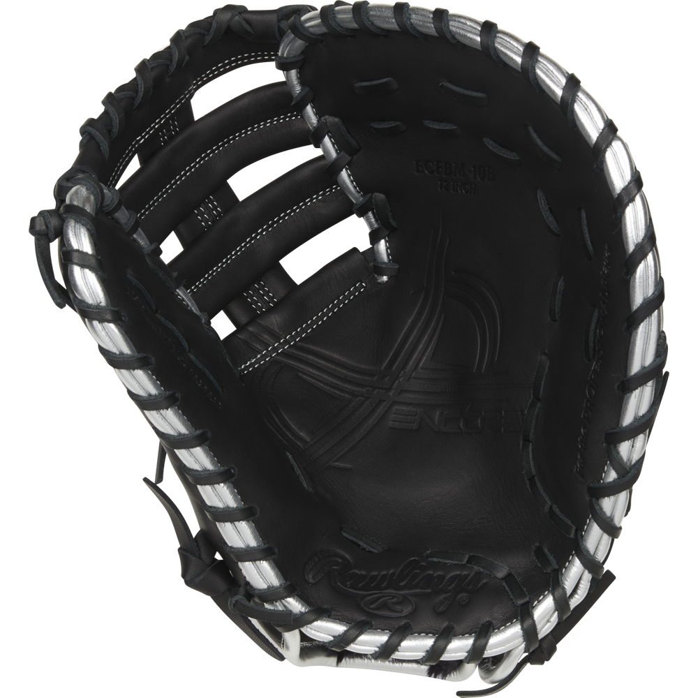 In addition, this Encore first base mitt is constructed from quality, premium leather and offers a ‘game ready’ feel so you can hit the diamond right away. For added comfort, the extended web base, deeper pocket, and high-quality internal padding provide optimal protection for your hand. Its adjustable pull lace wrist strap also provides a ‘custom’ fit so you get the perfect feel every inning. All this is packed in a classic black design complete with eye-popping platinum accents so you stand out every play.
