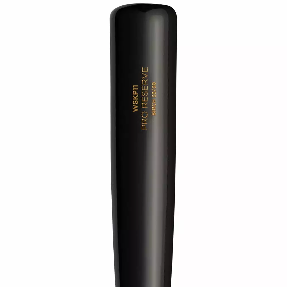 The WSKP11 Black/Tobacco Fade Birch Wood Bat by Warstic is Kevin Pillar’s personal turning model in Pro Reserve quality Birch. This bat combines a black half dip stain with a tobacco mid-fade over a raw handle with gold logo and engraving.