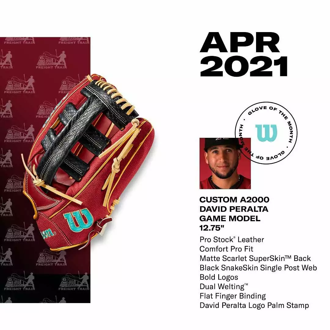 For the pros, by the pros. Arizona outfielder David Peralta built April’s GOTM with Matte Red SuperSkin and a Black Pro Stock Leather palm and web. This 12.75″ A2000 is available in left- and right-hand throw so you can handle all three outfield positions.
