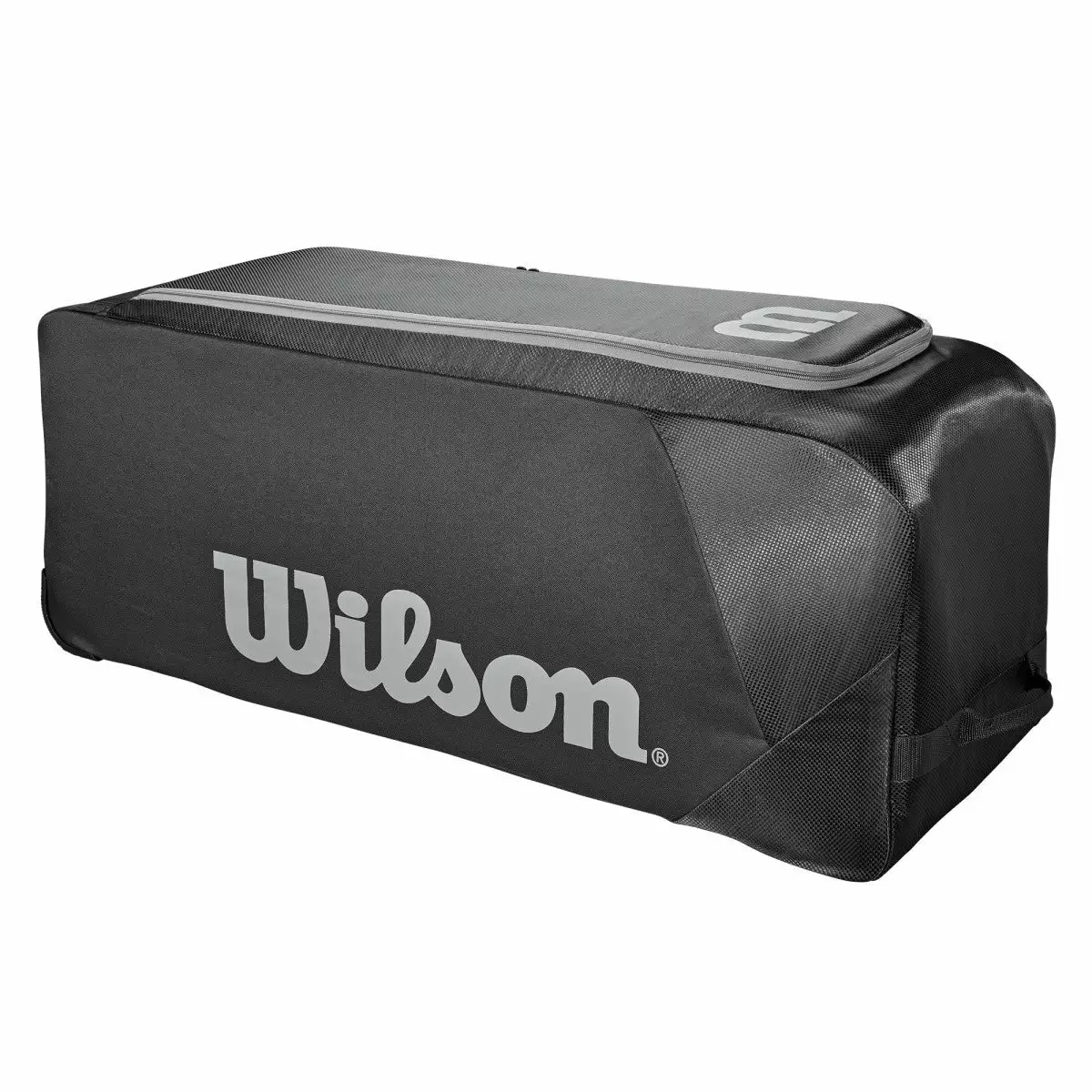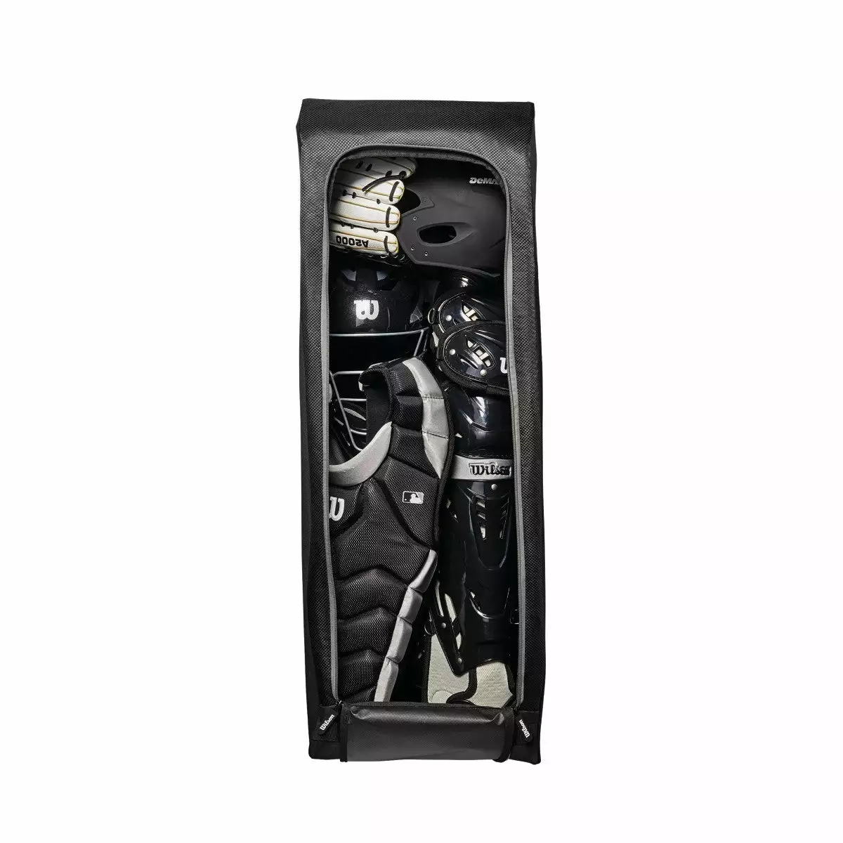 The all-new Wilson Team Gear Bag on Wheels is the perfect way to take your gear on the road. This oversized design that fits multiple helmets, bats and catcher’s gear features a rigid construction with support rails and an interior support bracket. One bag for everything you need to bring home a win.